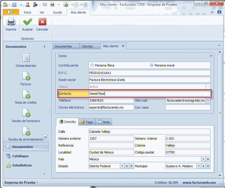 - Contacto. Se adiciono este campo para captura e identificación de la persona con la cual se debe tener contacto cuando se requiera hablar con el cliente.