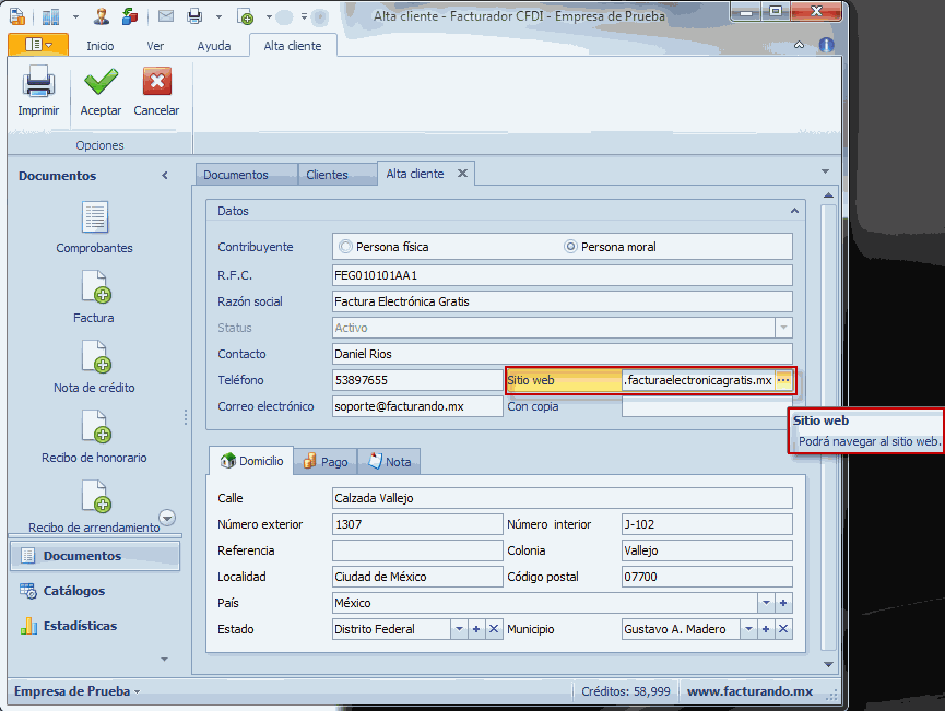 - Sitio web. A este campo se le adiciono un botón el cual te permitirá ir a la dirección del sitio web indicado, con tan solo dar clic sobre él.