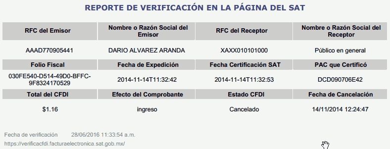 Hemos desarrollado un nueva herramienta con la cual podrás llevar a cabo la verificación del estado que guarda un CFDI en el SAT, para esto el sistema se conecta directamente a los servidores y extrae toda la información, siendo la fecha de cancelacion, el dato más importante.