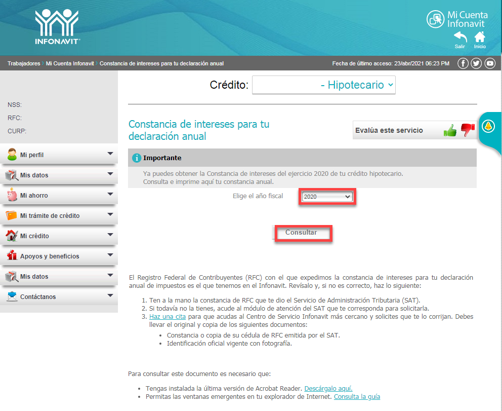 En seguida, te decimos a detalle cómo consultar y obtener la impresión de tu constancia de interese pagados por tu crédito, correspondientes al ejercicio 2020.