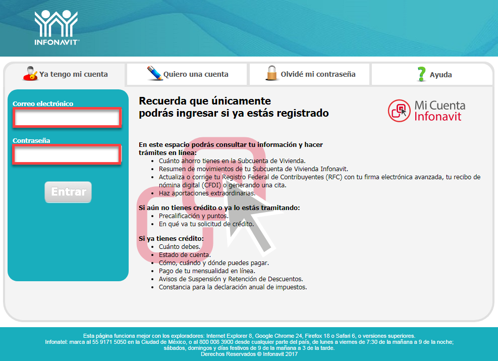 Para ello deberás dar clic en el siguiente enlace, para entrar al aplicativo “Mi cuenta del INFONAVIT”.