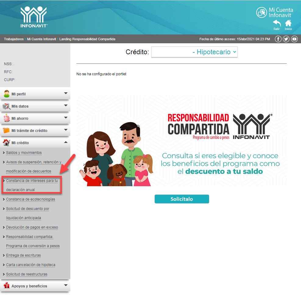 Una vez dentro, deberás de elegir la opción «Constancia de intereses para tu declaración anual«.